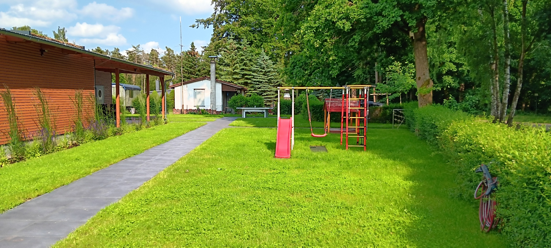 Loungemöbel laden zum Entspannen ein und man kann die Ruhe und Idylle mit Blick zum Lochower See genießen. Der Lochower See mit Badestelle befindet sich in direkter Lage ca. 30m vor dem Haus. Das Ferienhaus ist auch für Gäste mit Mobilitätseinschränkungen, Gehörlose und Schwerhörige, Blinde- und Sehbehinderte sowie Gäste mit kognitiven Einschränkungen eingerichtet. Auf Wunsch kann das Haus für elektrosensible Gäste umgestellt werden.