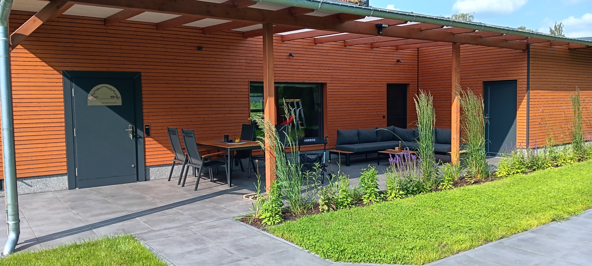 Das komfortable barrierefreie Ferienhaus Milchstraße in 4-Sterne-Ausstattung , hat eine Wohnfläche von 80m² und ist für 4 Personen eingerichtet. Eine große überdachte Terrasse mit Esstischgarnitur und
