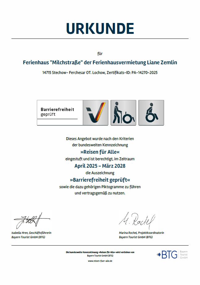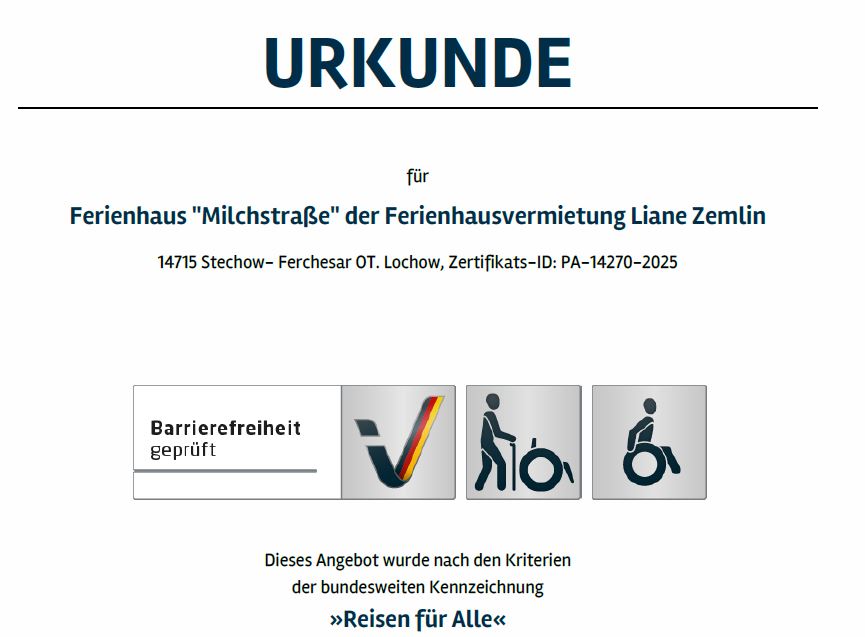Die hier aufgeführten Daten beziehen sich auf das Ferienhaus "Milchstraße" in Lochow